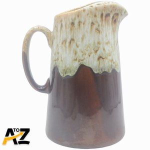 Vtg BROWN DRIP GLAZE WATER PITCHER Bean Pot Stoneware 9.5" TALL Hull Style B7