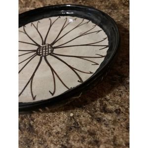 Simple and sweet vintage brown & tan flower plate. Has little markings all around the edge.