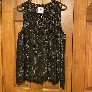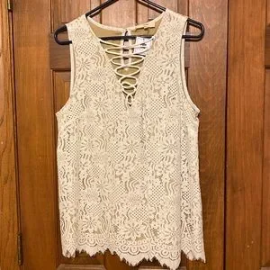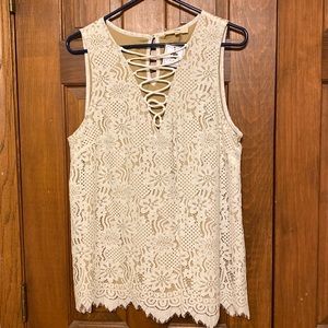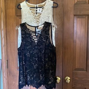TWO gorgeous lace tanks with lattice v-neck- black and cream!