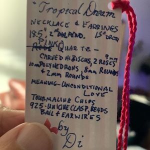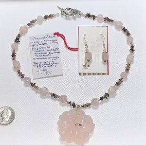 Handcrafted “Tropical Dreams” Pink Quartz Tourmaline & 925 Necklace & Earrings