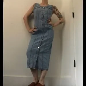 Z. Cavaricci Vintage Button Down Denim Dress Vneck Sleeveless Mint Condition