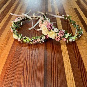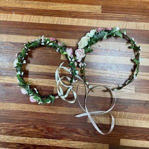 Two dainty flower crowns with adjustable ribbon sizing at the back making it the perfect package for children or adults.