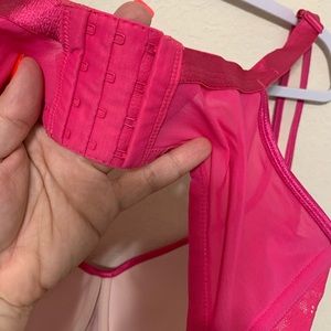 I’m including a brand new with tags Panty because it matches perfectly. It’s the same pink lace with white lining in the front. The back is mesh.