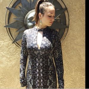 Free People Cabaret Plunge Maxi Dress black gray Muted Printed Silky Fabric