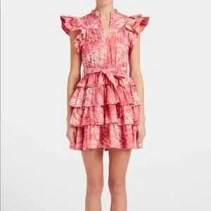 Lulua Frill-Sleeve Tiered-Ruffle Mini Dress