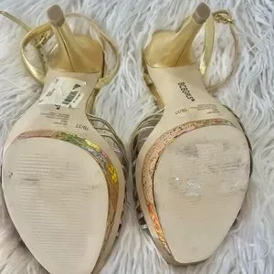 BCBGirls Gold rainbow string Platform. Brand new. Never used .