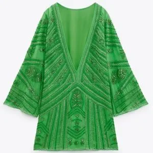 ZARA Beaded Mini Tunic Dress Green BNWT