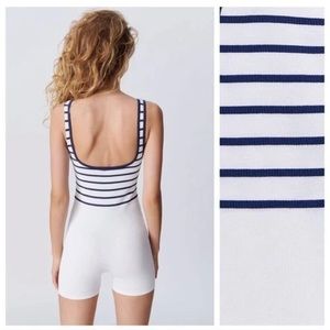 Zara NWT Limitless Contour Collection Playsuit Romper White Blue medium large