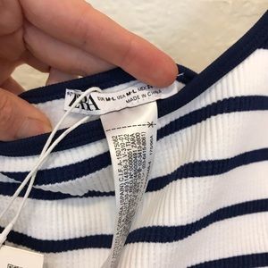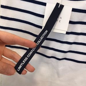 A Bloggers favorite. Stretch ribbed knit fabric. White with blue stripe. Sleeveless. Great to wear alone or for layering. NWT. New with tags.