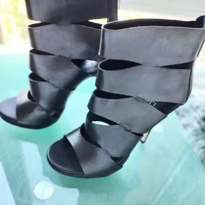Aldo Parrin Peep-toe Bootie Heels. Zipper-silver hardware.