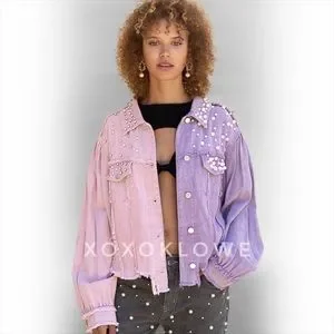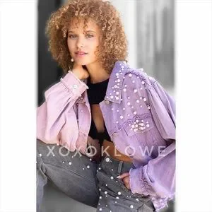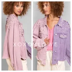 1 S POL Princess Pearl & Diamond Embellished Lavender Denim Jacket