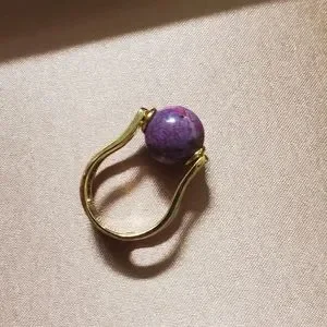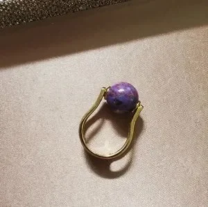 Purple Turquoise and Gold Plated Sterling Ring