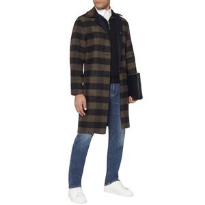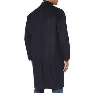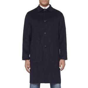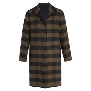 A reversible design adds double the dashing style to a clean-cut coat in a slightly oversized cut. A generous fit that hits just to the knee, handcrafted in Italian double faced wool. Fisheye buttons front closure. Hip pockets