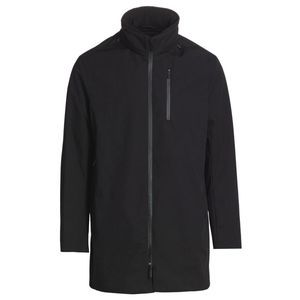 A modern tech blend adds a clean-cut vibe to a versatile jacket topped with a stowable hood for extra protection from the elements when you need it. Two-way front-zip closure with chin guard. Stand collar; stowable hood. Chest and front zip pockets. Lined