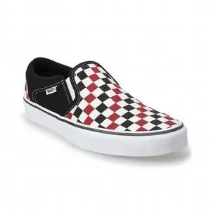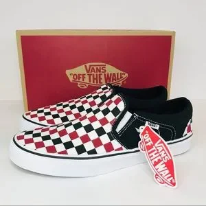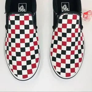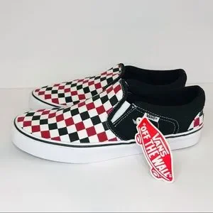 New! Vans Asher Men’s Skate Shoes Chili Pepper Black Check Slip On Sneakers