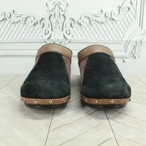 Sanita Black Suede Slip On Slide Studded Clogs Mules Size 39 US 9