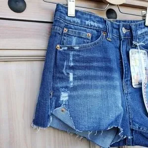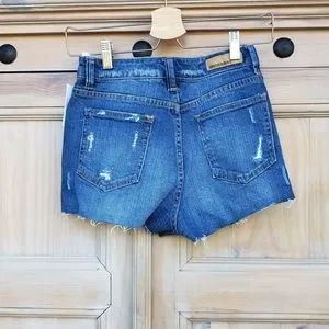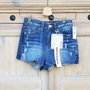 NWT darkwash high waist denim Jean's shorts distressed look fringe bottom hem size 1