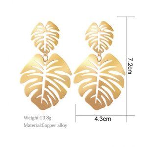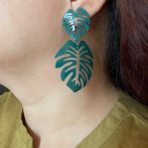 Boho Philodendron Leaf Plant Dangle Statement Earrings Green