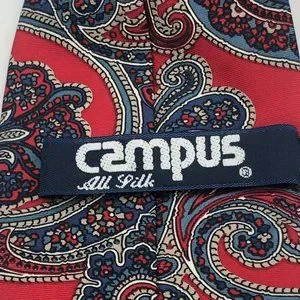 Vintage Campus tie in standard length with 3.5" blade. Colors are red, blue, gray, and white. 100% imported silk, made in the USA.