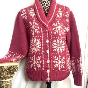 Vintage thick 80s sweater thick warm hot pink boho grammacore grandpa cardigan