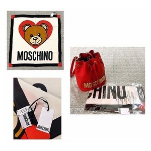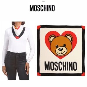 - 100% Silk Baby Hem Large Wrap/Scarf- Fun Teddy Bear With MOSCHINO Logo To Style Your Handbag/ Hair Wrap Or Wearing As A Scarf