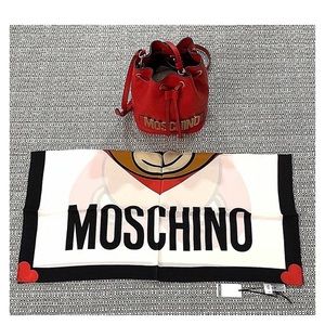 NWT MOSCHINO Signature Teddy Bear Red ❤️100% Silk Large Wrap/Scarf