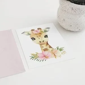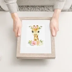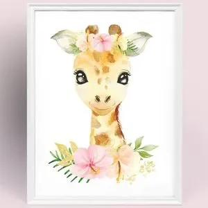 Cute Floral Giraffe Watercolor Wall Art Print Poster Unframed