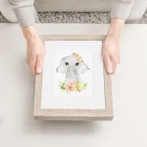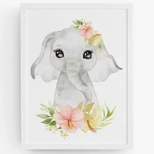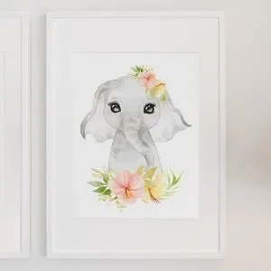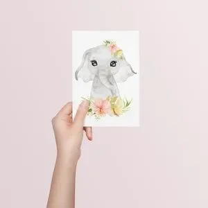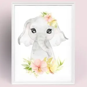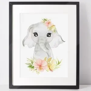 Cute Watercolor Floral Elephant Wall Art Print Poster Unframed