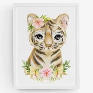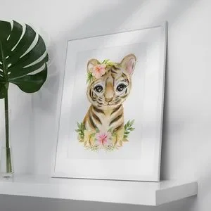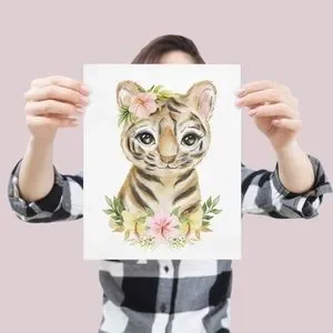 Cute Watercolor Floral Tiger Wall Art Print Poster Unframed