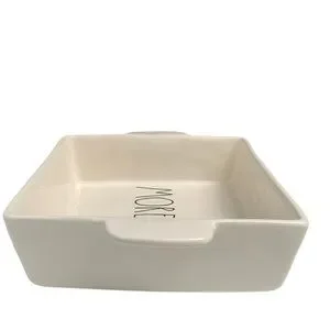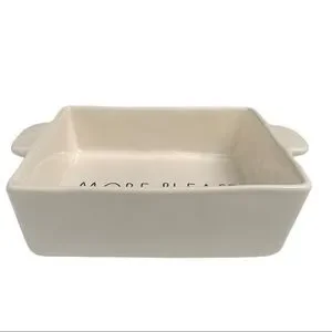 Rae Dunn MORE PLEASE Casserole Baking Dish White Black Large Letters Dimples NWT