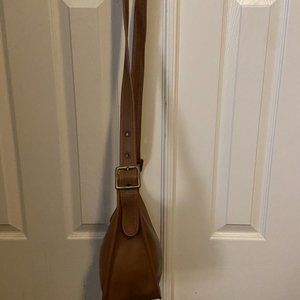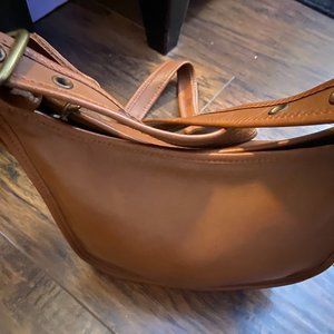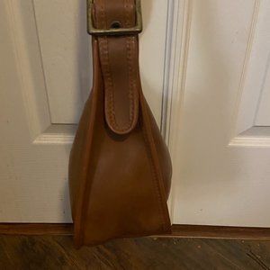 This beautiful vintage bag was handcrafted from high quality smooth, thick leather. I am selling this bag for my daughter who tells me that the designer of this particular bag has an American history family story. This bag has a gold brass hardware with zippered closure and a detachable leather strap with buckles that is 43" This bag has no tears/rips/odor and condition is like new exception, hardware which needs some cleaning. This bag was used by my daughter, but has covered in her closet for a while.