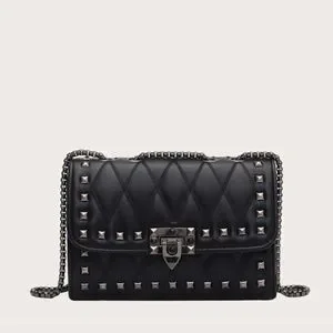 Studded Black Chain Shoulder Evening Shoulder Bag