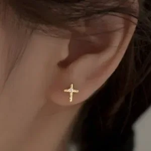 NWOT Sterling Silver Gold Plated and Rhinstone Cross Earrings
