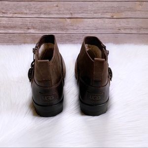 New In Box- UGG Women’s Cheyne Waterproof Booties In Coconut Shell Waterproof Leather With Seam-Sealed Construction, Side Zip Closure, Leather Strap With Metal Buckle, UGGpure Wool Lining And Spider Rubber Outsole. Shaft Hight 4”.