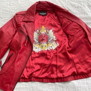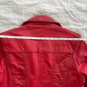 100% leather, gorgeous bright red color. Moto jacket with zipper details. Not sold in the US.