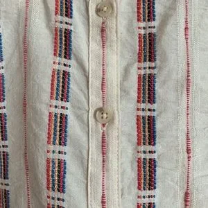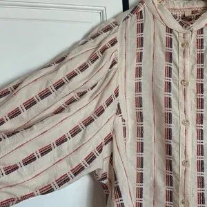 Dramatic button down blouse in excellent condition, beautiful woven detail in the fabric.