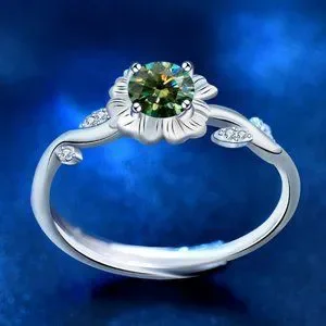 Certified 1/2ct. t.w. Green Moissanite Diamond Sunflower Ring NEW