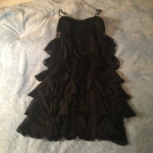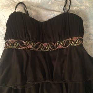 Cute black layered ruffle midi dress with sparkle sequins by Connected Apperal