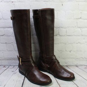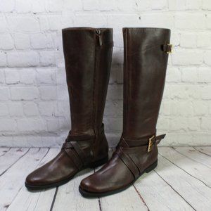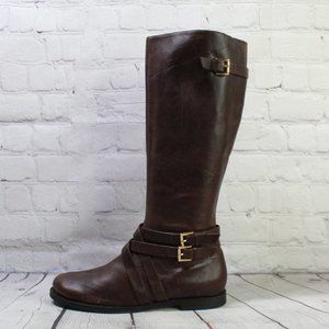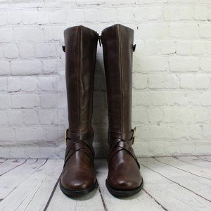 Cole Haan Brown Leather Side Zip Buckled Knee High Boots Size 9.5 B