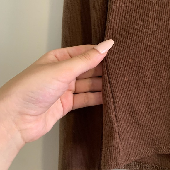 Cute brown Guess bodysuit. In good condition, but there is 2 tiny tiny discoloration spots that you can see on picture 3 & 4. Size medium.