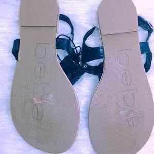 NWT Bebe Girls Black Shiny Bling Rhinestone Princess Thong Ankle Strap Sandals