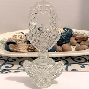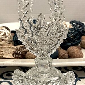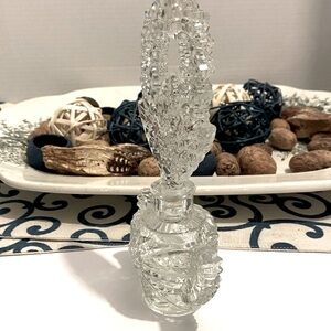 Antique Vintage Women’s Perfume Winged Pressed Glass Bottle w/ Dabber | Art Glass Scottish Thistle | In excellent condition with the exception of a chip to the dabber point (see pic), which can not be seen when displayed. 7.5” high x 3.75” across. Perfect gift for yourself of a person who loves vintage shabby chic, diva style decor. Thanks for looking 💕