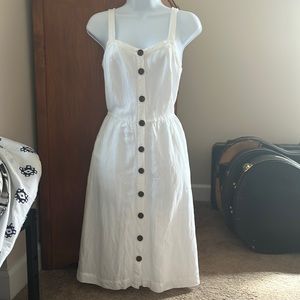 Ann Taylor Loft Linen Sundress. Button front. Lined. Has pockets! White. Slight snag on left side toward bottom but not that noticeable when wearing. (See pic)
