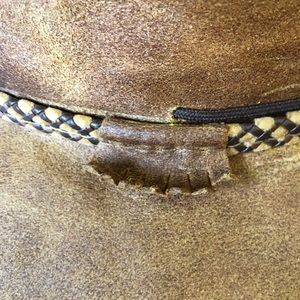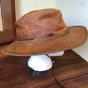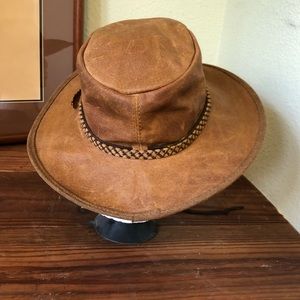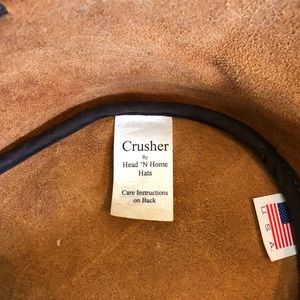 Heads n’ Home Hats Leather “Crusher” Cowboy Hat Adjustable M/L 57-58 cm 7 1/8”-7 1/4” Made In USA Distressed EC.