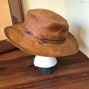 Heads n’ Home Hats Leather “Crusher” Cowboy Hat Adjustable M/L EC.