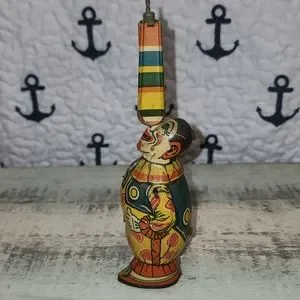 Vintage RARE MISPRINT 1920s Clown Tin Toy in Working Order