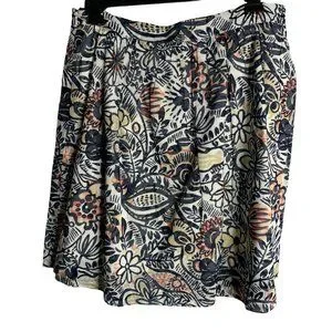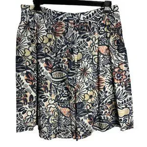 Loft Floral Swing Knee Length Skirt 14P White Lined Side Zipper Cotton