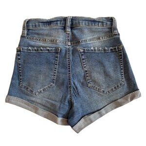 ♥︎ Garage brand Ultra-High Rise Shorts in Waterfront Blue. These stretchy short shorts are a cute closet staple with a cheeky, flattering fit & neatly-rolled bottom hems. I've loved wearing them over the years, but it's time for them to find a new home. Well-loved with lots of life left. See distressing in photos.
