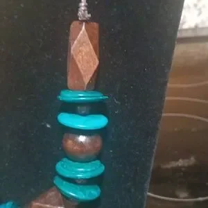 Smooth Green and Brown beads on leather necklace with matching disc shaped green earrings