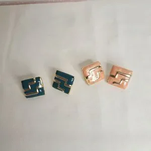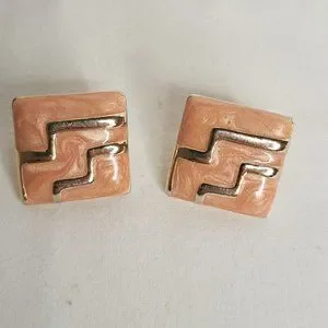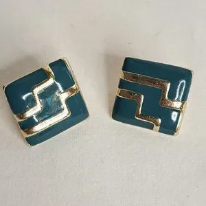 Set of 2 VINTAGE 80S Statement Clip Earrings Teal and Gold Peach and Gold Excellent Condition